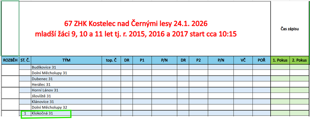 TÝM který má uhrazené startovné najde před názvem týmu v dané kategorii ve sloupečku startovních čísel 1 takto označený tým má startovné uhrazeno. Například takto
