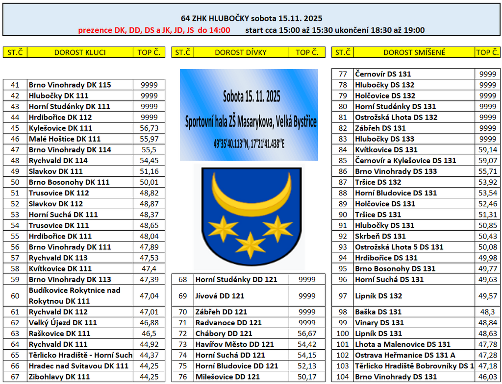 HLUBOČKY startovky sobota 15.11. 2025 12. 11. 2025 Zpět Sdílejte článek: Sdílet na Facebook Sdílet na Facebook