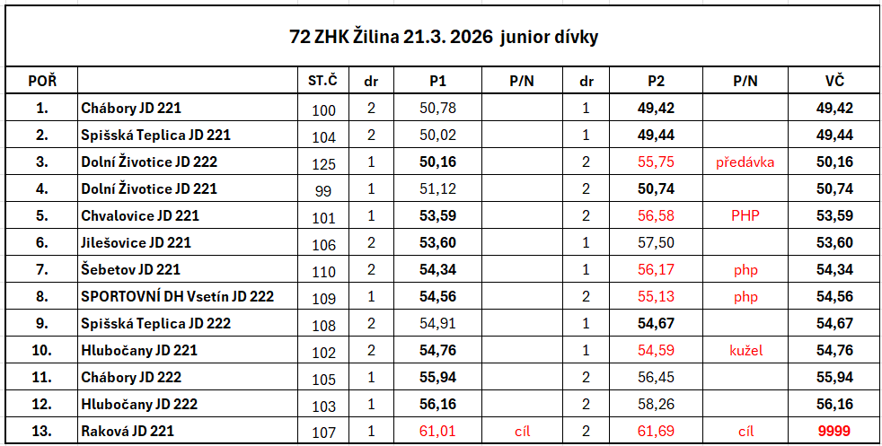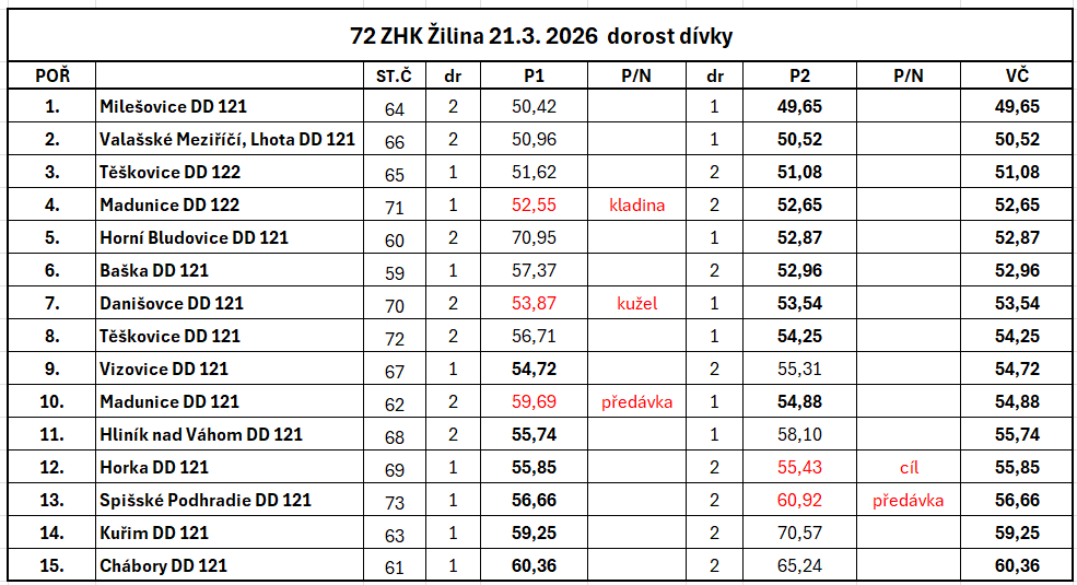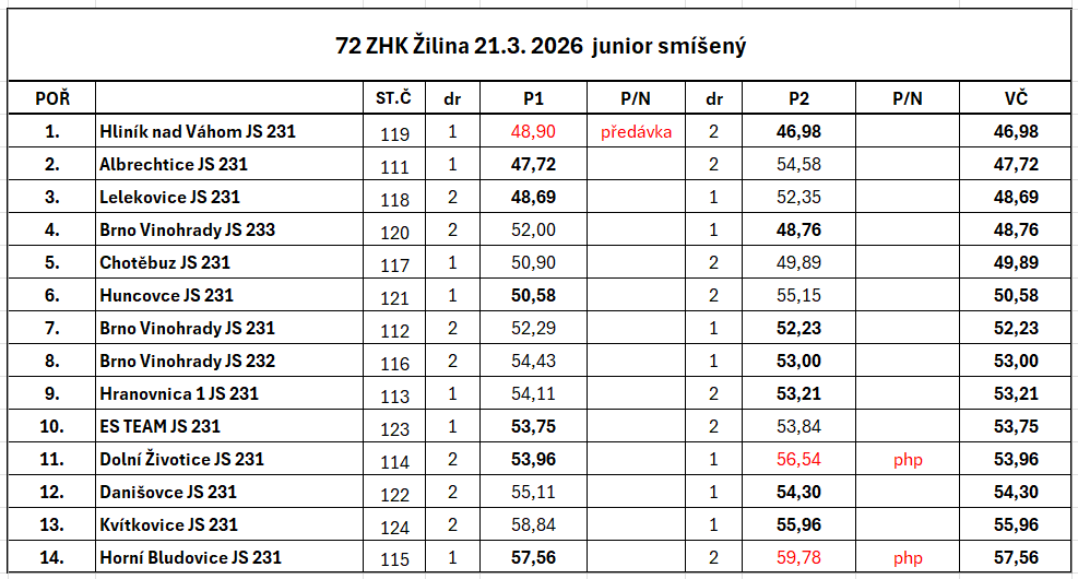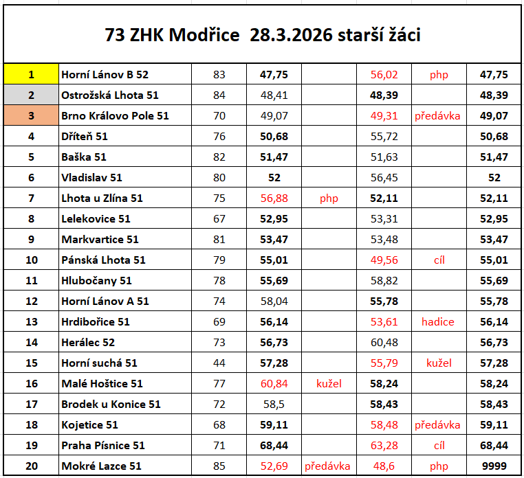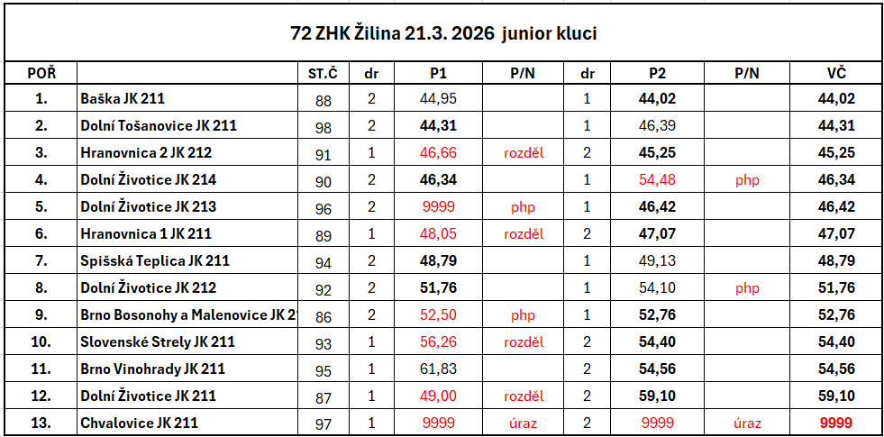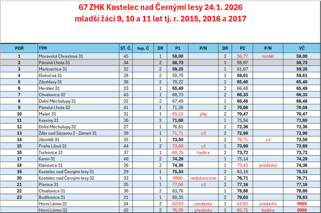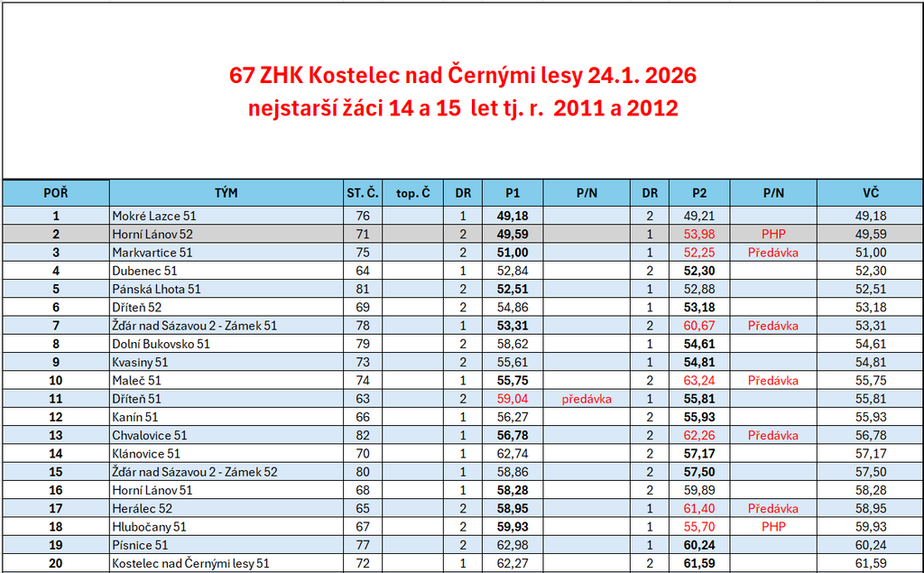 | 54 | FINÁLE ZHK ZA ROK 2024 Svitávka | so 11. 1. 2025 9:00 |